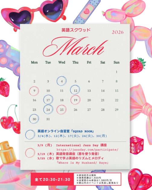 💋 3/19(木) 20:30-21:30 | 英語発音「唇すぼめ」スペシャル