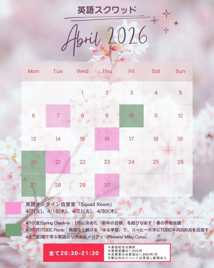 4月も皆さんと楽しい英語の時間を過ごしたいです^^